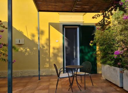 La camera ha l’ingresso indipendente; il terrazzo esterno è arredato con un ombrellone, un tavolino e due poltroncine per la colazione da consumare tra i profumi e i colori della campagna circostante.