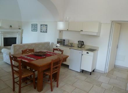 L’appartamento è composto da un ampio salotto, due camere da letto (una matrimoniale e una con due letti singoli), cucina, bagno e antibagno; l’esterno è arredato con mobili da giardino dove trascorrere piacevoli momenti di relax.